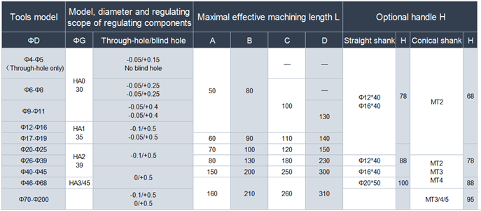 Note: Effective processing length of rolling cutter with hole diameter ofΦ26-68 has standard MT3 handle from