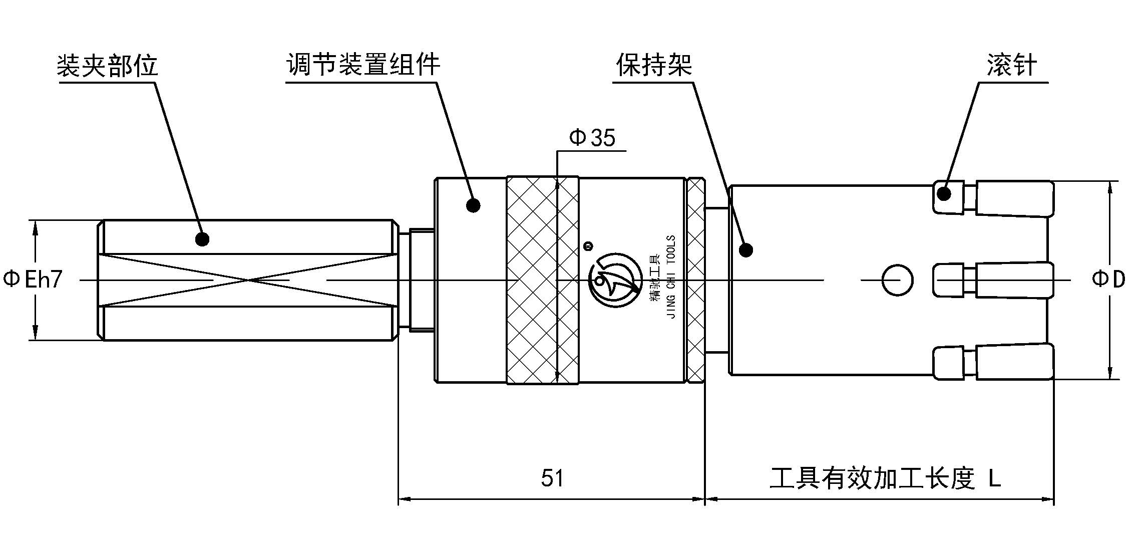 本工具可定制縮短刀具的長(zhǎng)度,適合安裝在有行程限制的設(shè)備上使用,如數(shù)控車床上直接滾壓加工,減少加工工序。